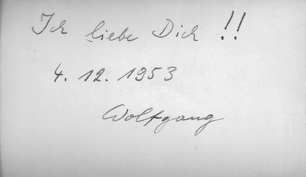 In einem Brief an Louis Fischer vom 20. Juni 1954 schreibt unsere Mutter über die Tatsache, dass sie sich in Wolfgang Harich verliebt hat (und vice versa, wie man auf der Rückseite des Fotos sieht). Im gleichen Briefwechsel finden sich auch noch weitere Informationen aus diesen Jahren, z.B. über den nachfolgenden Prozess um Janka und Harich und wie schnell sie dann doch Harich aufgegeben hat und (so scheint es) sehr schnell 1956 unseren Vater geheiratet hat.